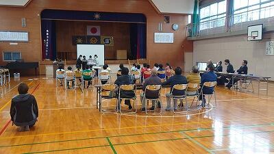 本校は、昨年度より「学校運営協議会」を設置したコミュニティ・スクールとなっており、本校の「学校運営協議会」は、地域づくり協議会、民生委員、保護者の代表、教育関係者、有識者などで構成されています。