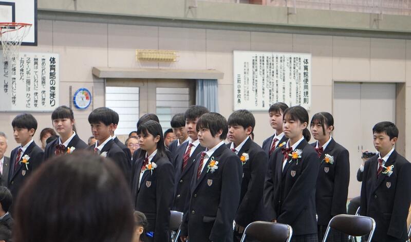 学校を代表して9年生の藤田爽嗣さんが、「初めて聞いたジャズだが、身体を動かしたくなるようなリズムで楽しかった。いつも歌う校歌でもリズムや伴奏が変わることで、その変化を楽しめた。受験勉強の合間にジャズを聴いてみたい。」とお礼の言葉を述べました。