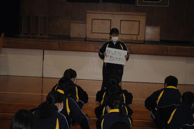 今週は「命の教育週間」として学校全体で取り組んでいることもあり、集会のテーマを“人権”として、7年生の生徒が集会の内容を企画し、実施しました。