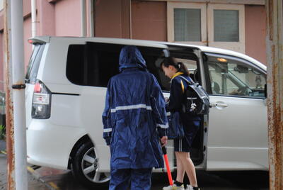 今朝の線状降水帯発生による朝の送迎ありがとうございました。昨日の昼過ぎに、PTA会長の緒方さんが校長室に来られ、「校長先生、明日の朝は線状降水帯が発生して、かなり雨が強そうですけど、何か対応をした方がいいかもしれませんね。」とアドバイスをいただきました。