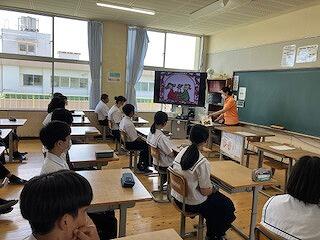 台湾にある羅東鎮市の東光中の中学1年生と、本校の7年生がオンライン会議システムを使って、交流をしました。