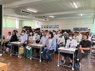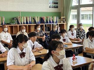 三財地区遺族会の方も授業に来ていただき、常盤さんの話に熱心に耳を傾けていらっしゃいました。