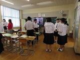 今回の指導は、妻高校より2名の先生と情報ビジネスフロンティア科の3年生4名に来ていただきました。先生方から、コミュニケーションの大切さや、マナーについて教えていただき、9年生にとって、進路目標の達成に向けてとても充実した時間となりました。