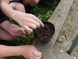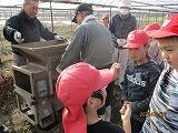 4年生が学習しているそば栽培で、収穫した実を落としました。