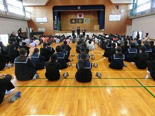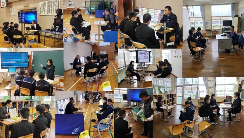 1月15日の4校時、社会教育課の妹尾課長、筌瀬主幹、横山主事に校長室へお越しいただき、3つのグループが考えたことを許可してもらうためのプレゼンテーションを行いました。