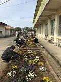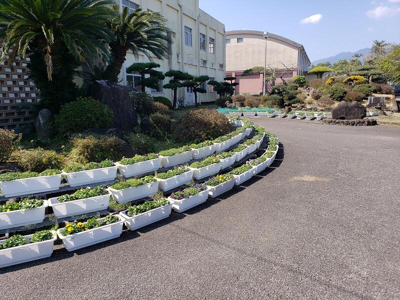中学部全員が一人3鉢を担当し、卒業式当日に式場を飾る花を育てています。昼休みになると、水やりや花芽摘みをする姿が見られます。きっと式当日は、美しい花が卒業生の門出をお祝いしてくれることでしょう。