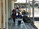 学校のフェンスに飾っていたこいのぼりの片づけに来られました。