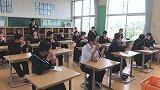 窓を開けて、できるだけ机の間隔をあけて指導しています。