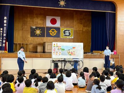 併せて、『長い夏休みには楽しいこともあるが、水難事故や交通事故など危険もいっぱいある。夏休み期間は、いつも注意をしてくれる先生もいないし、昼間に保護者が家にいなくて、子どもだけになる家庭も多くあると思う。そんな中、自分の身の安全を守るのは自分しかいない。自分で考えて行動して欲しい』という話をしました。