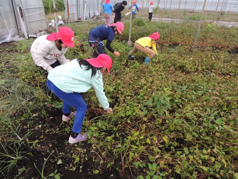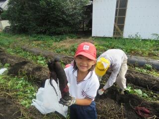 10月20日(木)、高齢者の皆様と保育園、保育所の皆さんと一緒に小学部1年生と2年生が芋掘りをしました。5月に植えた芋がたくさんとれました。「うんとこしょ、どっこいしょ」みんなで力を合わせて芋掘りをしました。子どもたちはにこにこ顔で楽しそうに活動していました。この活動を通して感謝の心や思いやりの心が育つことを願っています。。