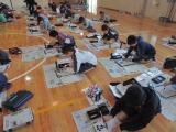 1月8日(金)の5~6校時に小学部3~6年生が、書き初めを行いました。体育館いっぱいに広がり、習字を教えてくださっている山口先生の御指導のもと、自分の目標や好きな言葉を筆で書きました。子どもたちは真剣な表情で、半紙に丁寧に書いていました。