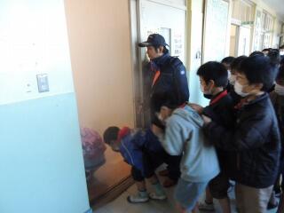 2月9日(火)火災の避難訓練を実施しました。警報器が鳴って避難の放送があった後、児童生徒の皆さんは、先生の指示に従って速やかに運動場に避難しました。その後、多目的室で、煙体験をしました。火事の恐ろしさを体感できたようでした。