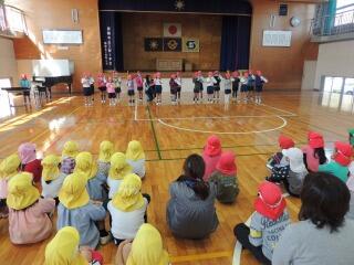 2月19日(金)三財保育所、上三財保育所、岩崎保育園の子ども達が来校して、1年生とのふれあい授業を行いました。1年生が音楽発表や縄跳びを披露した後、保育所や保育園の子ども達と手をつないでゲームをしたり、長なわをしたりしました。1年生の皆さんは、すっかりお兄ちゃんやお姉ちゃんになって、保育所や保育園の子ども達のお世話をしっかりしていました。心温まる素敵なひとときでした。