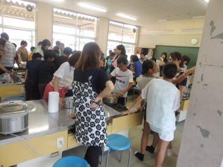 8月3日(水)、三財地区館主催の親子チャレンジ教室が、三財小中学校家庭科室で行われました。