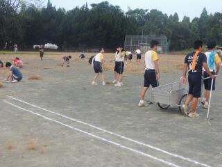 8月21日(日)午前7時より運動場の除草作業を中心にPTA奉仕作業を行いました。小中学校の全保護者と小学校4年生から中学校3年生までの児童生徒で行いました。たくさんの方々が参加してくださり、運動場がみるみるきれいになりました。これで運動会の練習が思う存分できると思います。参加してくださった皆様、誠にありがとうございました。