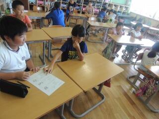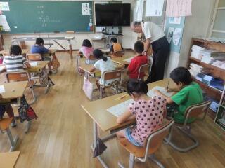 8月9日(火)登校日の日に高齢者の皆様に暑中見舞いのはがきを書きました。小学校1年生は、中学校のお兄さんやお姉さんに手伝ってもらいながら一生懸命書いていました。この活動を通して、心と心がつながっていければいいなと思います。