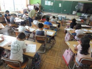 『元気になる食べ物を探そう」という学習でした。「体をつくる食べ物」、「エネルギーになる食べ物」、「体の調子を整える食べ物」について学習しました子どもたちは、熱心に学習に取り組んでいました。この学習を通して好き嫌いなく何でも食べる子どもになってほしいと思っています。