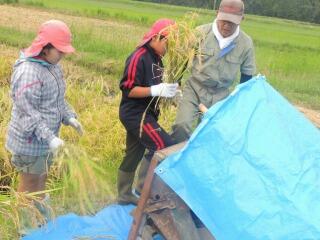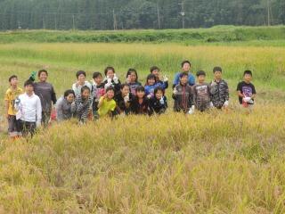 10月7日(金)に5年生が、稲刈りと脱穀の体験活動をしました。地域づくり協議会の方々及びJA青年部の皆様、保護者の皆様の御指導のもと、子どもたちは楽しそうに活動していました。今後は、収穫したもち米を袋詰めして、へそ祭りで販売します。このような一連の活動を通して、感謝の心や働く喜びを学んでほしいと思います。