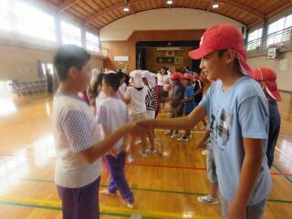 歓迎式の後、お互いに歌や合奏、演技などを披露しました。その後、一緒に給食を食べ、清掃をしました。昼休みには、長縄やドッジボールをして楽しみました。お別れの会で、プレゼントを交換しました。成功小学の子どもたちが笑顔で次の場所に向かいました。5年生、6年生の思いやりのある行動が、とても素晴らしかったです。まさに「つなげよう、つながろうみんなの心」だったと思います。