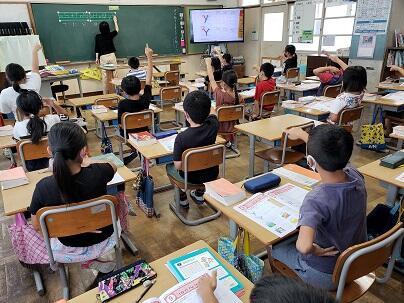 2年生は、タブレットを使ってくり下がりの計算をしていました。