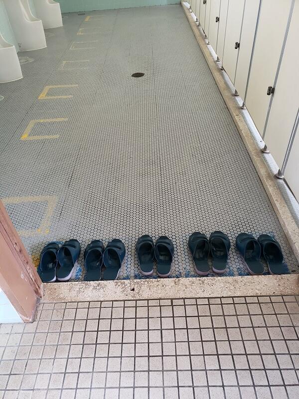 様子を見に行ってみると、普段はないはずの足ふき用タオルが敷いてありました。
