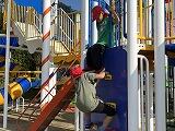 その後は、いろいろな遊具でたくさん遊びました。大きな遊具が特に楽しかったようで、おにごっこをしながら上ったり下りたりしていました。