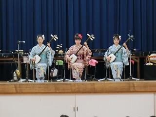校歌も三味線で演奏をしたいただき、いつものピアノ伴奏とは違う感覚で、歌っていました。