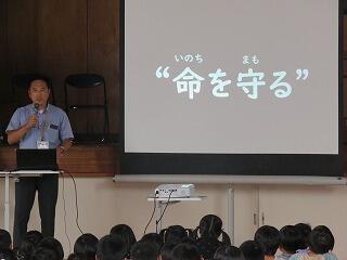 5月10日、午前中に震度4の地震が起き、グランドに避難しました。昨年度の訓練を生かし、スムーズに避難することができました。