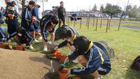 その後、手伝っていただきながら、20~30分くらいで植え終わりました。当日は天候にも恵まれ、子ども達も気持ちよく活動ができました。