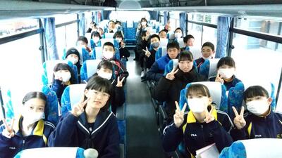 たくさんの保護者、子どもたち、中学生、先生方に見送られて、いよいよ修学旅行へ出発です。