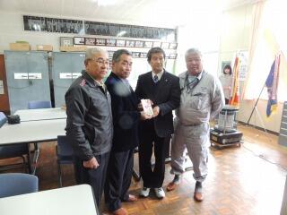 1月28日(木)、三財小中学校出身の河野憲次様、鍋島正則様、井上文男様方の同窓生(寅卯会)のメンバーでゴルフを25年間続けておられ、それが今回100回になり、その記念チャリティー事業として、三財小中学校に金一封を寄贈していただきました。誠にありがとうございました。子どもたちのために大切に使わせていただきます。