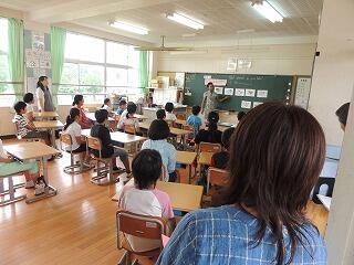 2年生は、昔の三財のことを調べていて、堤先生から昔の写真などを見せてもらい、目を輝かせて話に聞き入っていました。全員で「先生、ありがとうございました」と元気よく言えてました。堤先生もにこにこ顔でした。