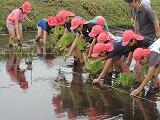 6月19日(金)5年生が保護者の皆様やJA青年部の方々の協力を得て、田植えをしました。