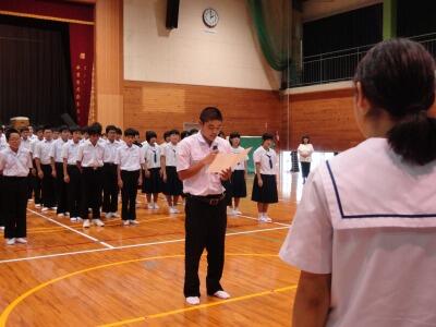 すべての部活動生の情熱、やる気、今まで積み重ねてきた努力が伝わってくる素晴らしい推戴式でした。大会に参加しない生徒も、心のこもった激励の言葉で、全校生徒の心を一つにしてくれました。最後には円陣を組み、三財中学校が一つになりました。