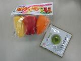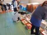 中型カラーピーマン と 三財のお茶 の配布をしながら