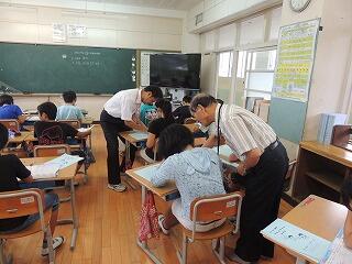7月28日(火)に小学部3年生から6年生の希望する子どもたちが、山口先生の御指導のもと、習字の学習に参加しました。夏休みだからこそじっくりと丁寧な字が書けると思います。子どもたちは、先生の指示に従って真剣に取り組んでいました。