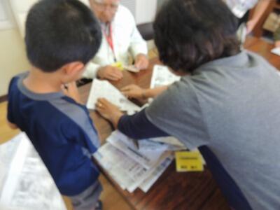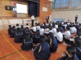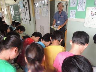 2年生は、昔の三財のことを調べていて、堤先生から昔の写真などを見せてもらい、目を輝かせて話に聞き入っていました。全員で「先生、ありがとうございました」と元気よく言えてました。堤先生もにこにこ顔でした。