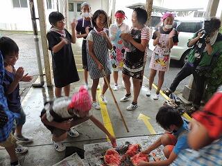 結団式ではA団、B団の色を決めるゲームが行われ、A団が白団、B団が赤団に決定しました。