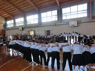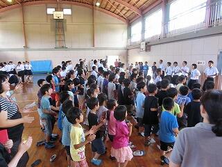 7月16日(木曜日)3校時目に、第4回三財小中学校運動会の結団式が行われました。