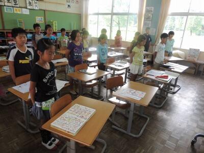 7月9日(木)、本校にて、西都市英語部会があり、その一コマとして6年生の研究授業が実施されました。子どもたちは楽しそうに授業を受けていました。