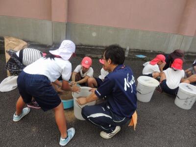 東児湯消防組合消防本部では、消火活動体験や司令室・消防車両などの見学を行い、日頃から防災意識をもつことの大切さを実感しました。