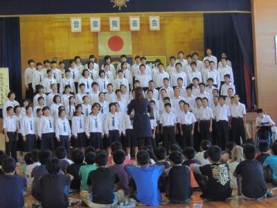 また、西都市出身の歌手GILLEさんのミニコンサートも行われ、市内の中学生とともに「きっと」を合唱しました。
