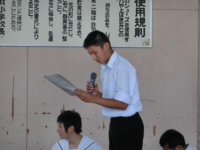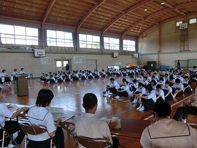 小学部の各種委員会の発表や小学生も交えた中心議題の話し合い、「いじめは絶対にしない、させない、許さない」の3原則を小中学生が声に出して読むいじめ撲滅宣言は本校ならではの内容です。