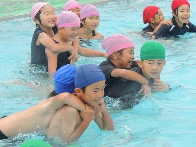 プール学習です。みんな水を怖がる様子もなく楽しそうに先生の指示に従って