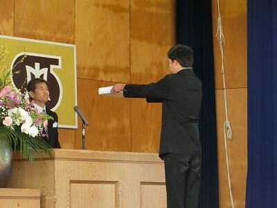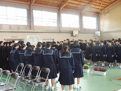 3月17日(火曜日)に、平成26年度 第68回 三財中学校 卒業式が、数多くの御来賓の方々やお世話になってきた地域の方々、保護者の御臨席のもと、盛大に執り行われました。3年生にとっては、中学校3年間の中で、最も大きく、大切な式典でした。厳粛な雰囲気な中でも、感動と涙にあふれた、日本一の卒業式になりました。最後の最後まで、後輩達にカッコいい姿を見せてくれた3年生、本当にありがとうございました。そして、卒業おめでとうございます。