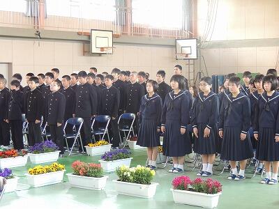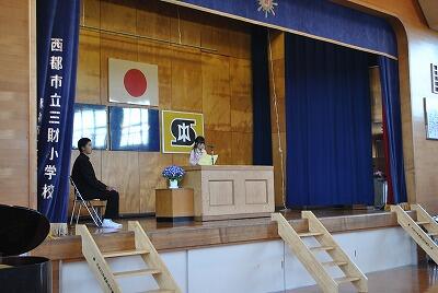 児童生徒代表挨拶では、今までの頑張り、これからの目標を立派に語ってくれました。小学部6年生、中学部3年生を送り出し、寂しくもある中で、とても頼もしく、これからの三財小中学校が楽しみになってきました。