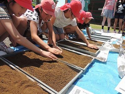 5月22日(金)に5年生が餅米の種まきをしました。JA青年部の皆様、保護者の皆様の指導のもと熱心に作業しました。これから6月に田植え、10月に稲刈り、12月に餅つきをします。その活動の中で、農業のすばらしさを体感してほしいと思います。