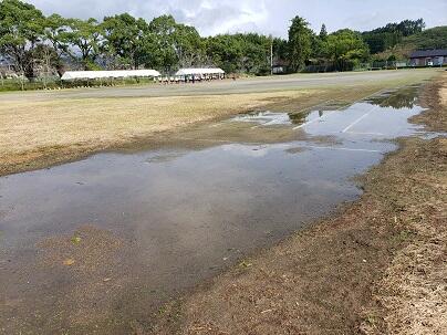 さて、昨日の雨で運動場がこんな感じになっています。