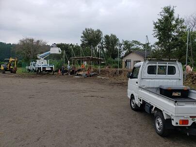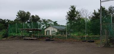 野球場では、1塁側の木の伐採に伴い新たな防球ネット工事が行われました。