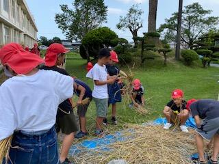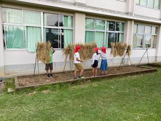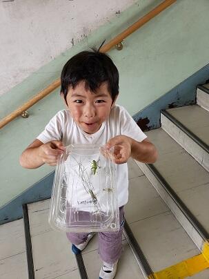 部屋に戻ろうとしたとき1年生が、「バッタを3匹つかまえました。」と